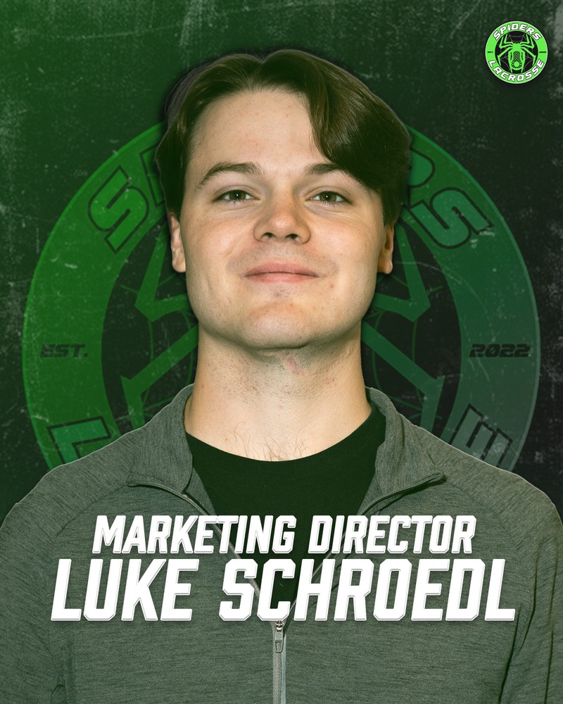 Hi everyone, my name is Luke Schroedl, and I’m excited to step into the role of Marketing Director for Spiders Lacrosse Club. I’ve been creating with Spiders since day one, and it’s been incredible to see the program grow into what it is today. Now, I’m looking forward to helping take that growth even further by elevating our players’ exposure, giving them every opportunity to achieve their dreams — all while continuing to build the Spiders brand and share our story across the lacrosse community.
